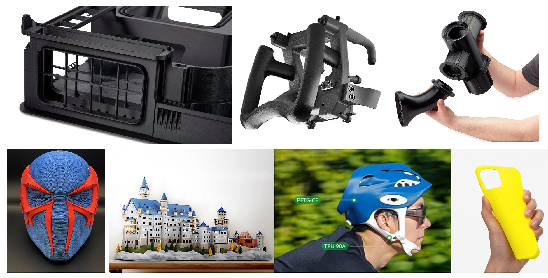 - Engineering: Nylon(내마모성), PC(고강도), ASA(내후성/실외용), TPU(고무 유사/탄성) , Ultem(고온)